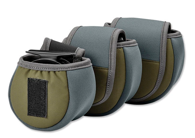 A unique reel case designed to protect your reel both on and off the rod. Constructed out new Safe Passage fabric and neoprene for padding, these cases come in 3 sizes to accommodate nearly every reel size. In olive gray. Imported.