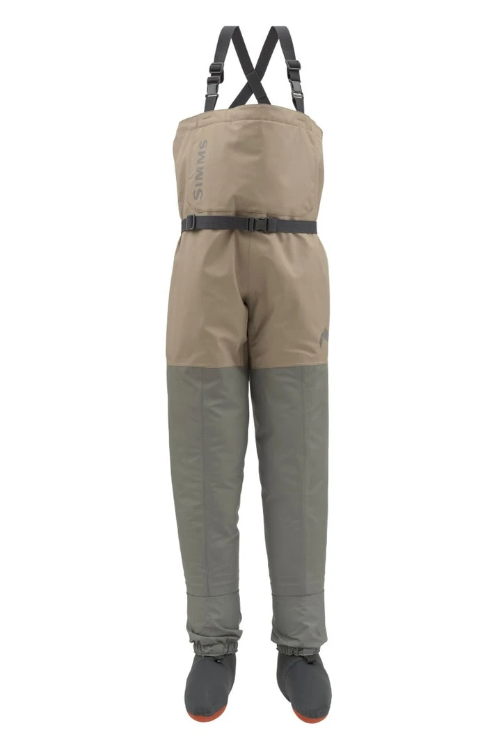 The kids Tributary Stockingfoot Waders are held to the same high standards as Simms award-winning adult waders. A blend of 3- and 4-layer fabric promotes breathability in the upper zones and durability in the lower-leg zones, while an articulated cut promotes natural mobility both on the trail and in the water. Key features include large fleece-lined, reach-through handwarmer pockets for cool-day comfort, plus a secure chest pocket for keeping tools and fly boxes within reach.