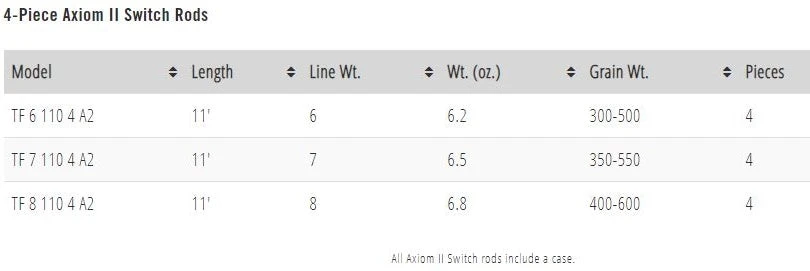 The Axiom II Switch is engineered for two-handed anglers providing optimal performance across a range of fishing techniques from a single rod. Now it’s possible to optimize a two-hand rod for all three techniques: “swinging flies,” “indicator fishing,” and “throwing lead”. TFO combined their highest modulus materials and proprietary Kevlar application with actions inspired by the industry-leading Deer Creek series. Axiom II breaks the code delivering the large grain windows necessary for a truly exceptional multi-technique two-handed rod. The Axiom Switch rod provides the caster the ability to achieve maximum targeted forward distance with the least amount of expended energy, while maintaining a functional rod length for line management and fish fighting.