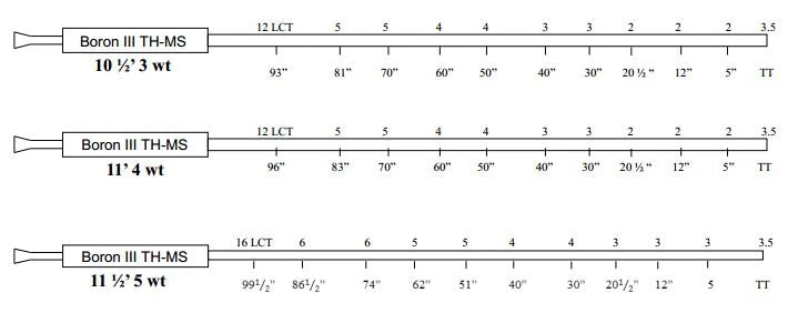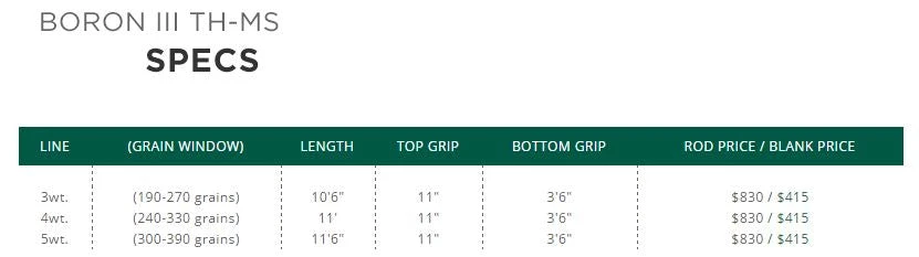 With the innovative BORON III TH-MS rods, Boron added three light line (3, 4 and 5wt.) trout models to the Boron III TH Two Handed series. Combining the power of a Spey rod and the finesse of a trout rod, they add a new and exciting dimension to the sport. Featuring Boron III technology, these fast action rods excel in a range of Two-Handed situations, from covering big, broad rivers to dealing with tree-lined banks or demanding weather. They have a specialized grip that feels more trout rod than Spey, use slightly larger chrome guides than typical trout rods, and come with a larger tiptop that allows for the larger diameter of the spey style lines.